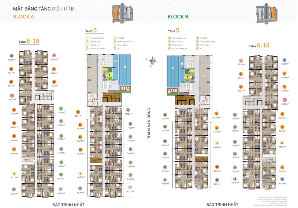 – Tổng số căn hộ : 518 căn, Block A có 273 căn, Block B có 245 căn