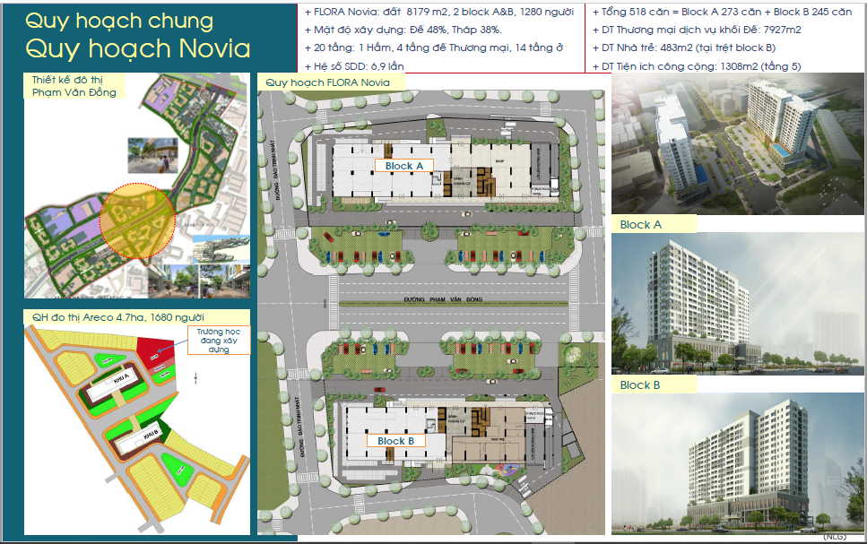 - Do là căn hộ mang tính chất vừa kinh doanh ở các tầng thương mại 1, 2, 3 và khu nhà ở từ tầng 4 trở lên nên Căn hộ Flora Novia sẽ có thiết kế khác so với các dạng căn hộ kiểu nghĩ dưỡng trong khu đô thị như Mizuki Park và Akari City.