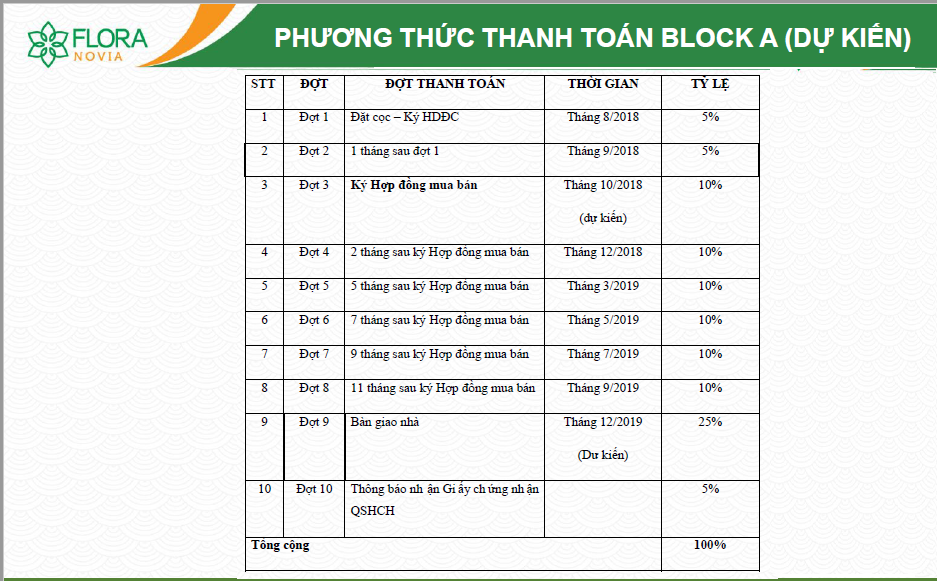 – Phương thức thanh toán Căn hộ Flora Novia Thủ Đức