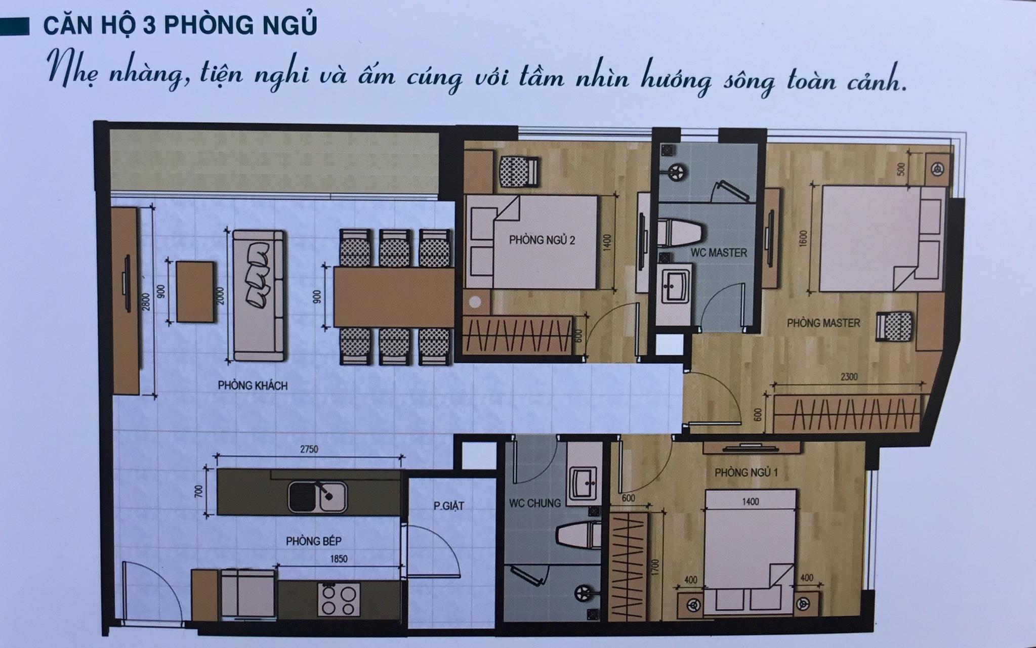 - Căn 3PN giá 2,8 tỷ