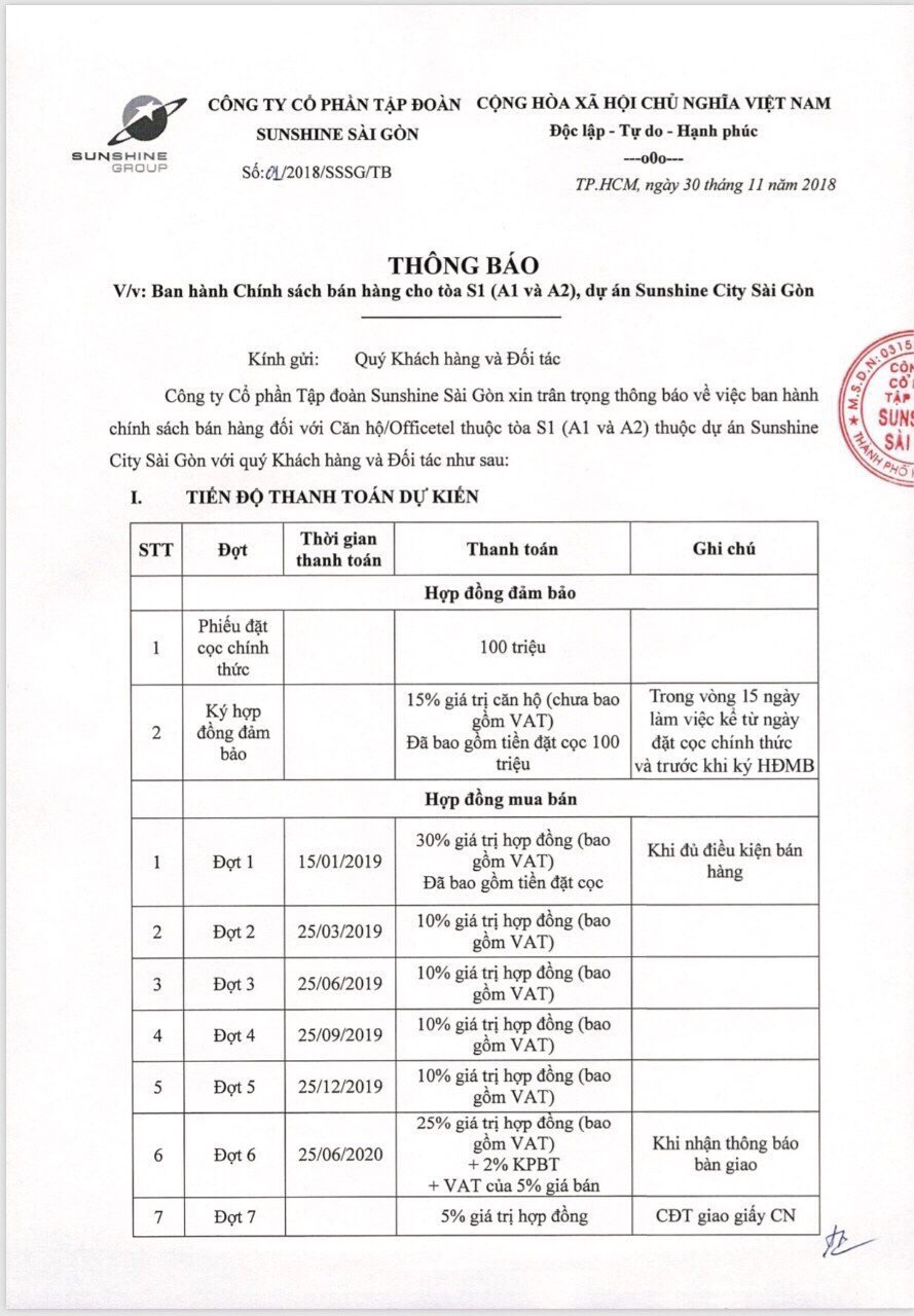 Giá dự kiến Sunshine City Saigon từ 50-55 tr/m2 ( chưa VAT )