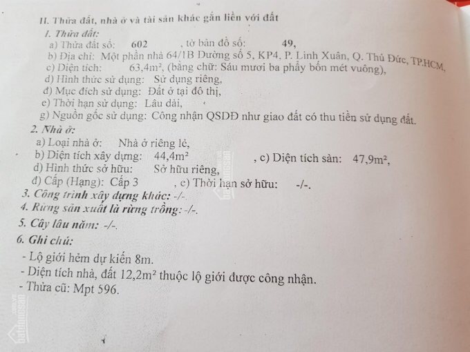 - Diện tích: 63.4m2, ngang 4.5m, thổ cư 100%, xây dựng tự do, dân cư hiện hữu, đông đúc, gần trường học, chợ Linh Xuân, bệnh viện quận Thủ Đức…