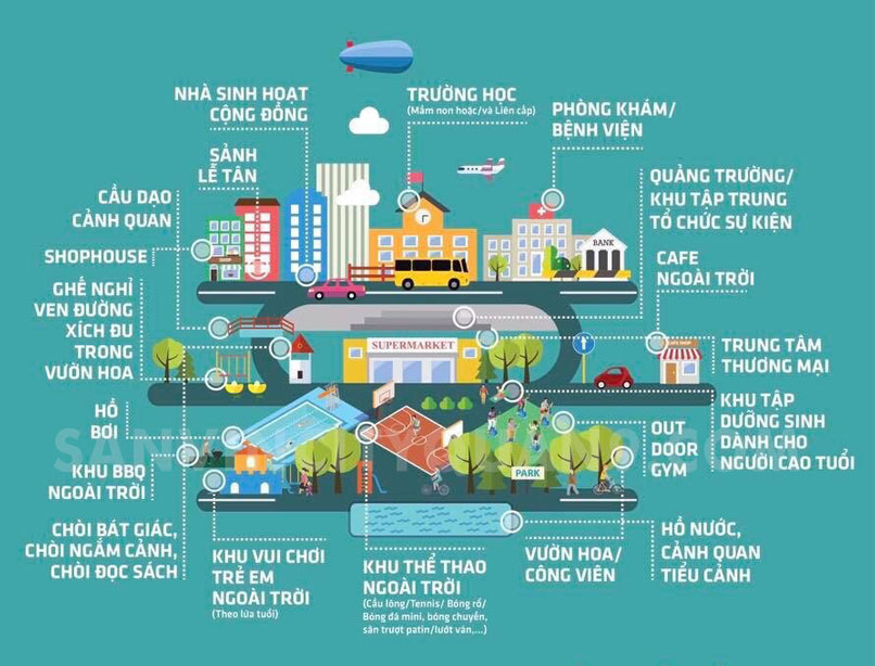 – Phòng gym, hồ bơi, sân tennis, sân tập golf, đường dạo bộ chạy bộ…