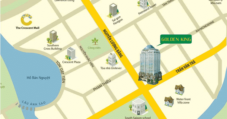 Golden King tọa lạc tại 15 Nguyễn Lương Bằng, Q.7, TP.HCM, Golden King sở hữu vị trí tâm điểm Khu đô thị Phú Mỹ Hưng, nơi được mệnh danh là Trung tâm thương mại – tài chính quốc tế sôi động nhất nhì tại TP.HCM. Có vị trí 2 mặt tiền đường và góc nhìn chính hướng ra công viên, Golden King được thừa hưởng hệ thống giao thông thuận tiện, rộng rãi và cơ sở hạ tầng vượt trội của khu vực, từ đây dễ dàng kết nối với các quận khác của thành phố chỉ trong ít phút.