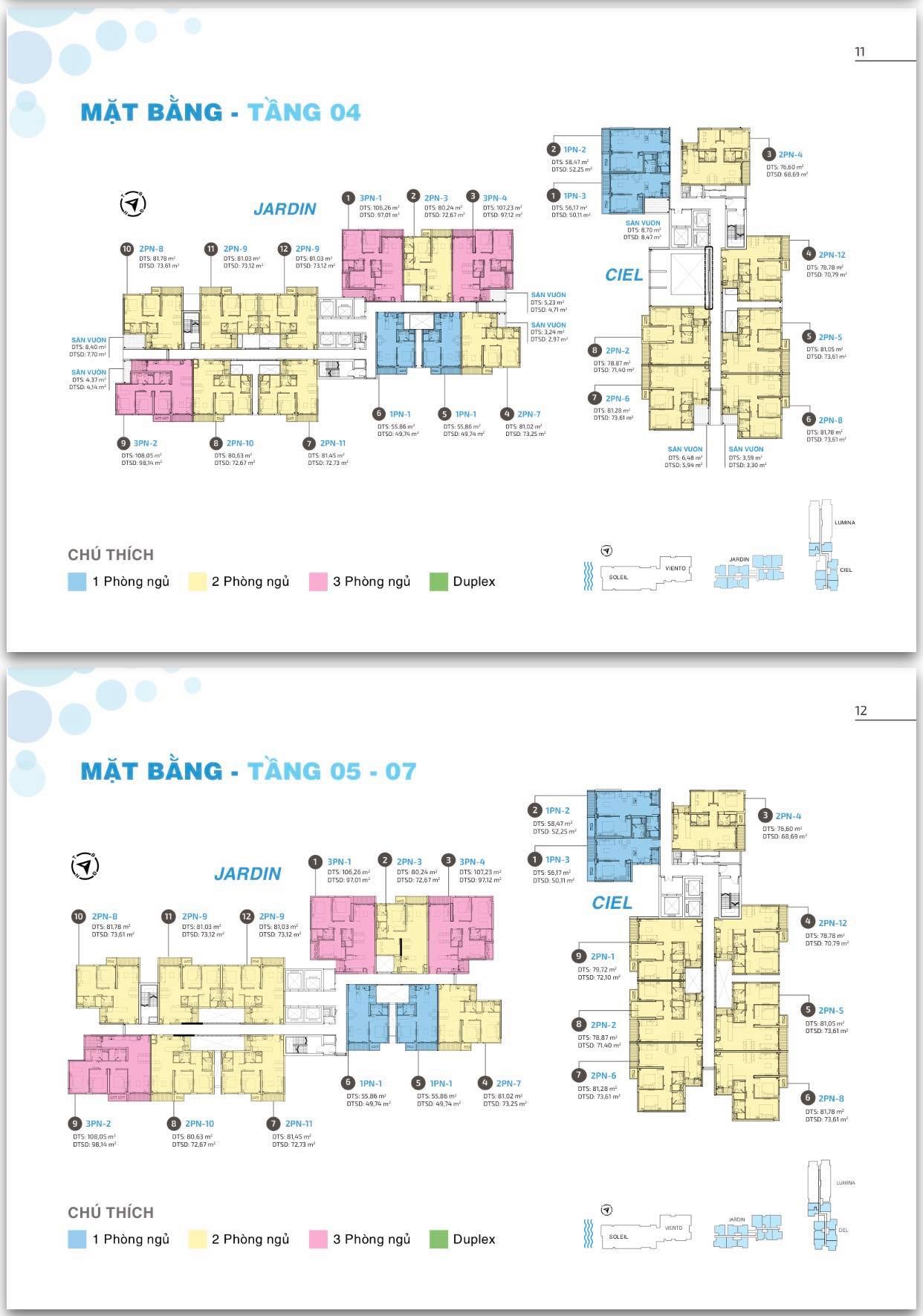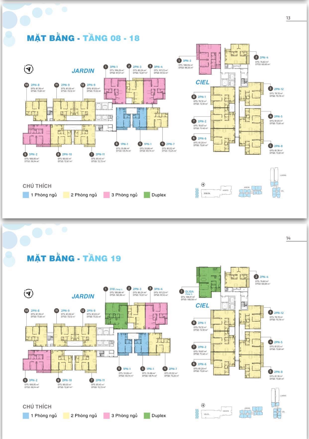 Quy mô dự án: 5 tháp (Soleil, Viento, Jardin, Ciel, Lumina) 22 tầng/tháp