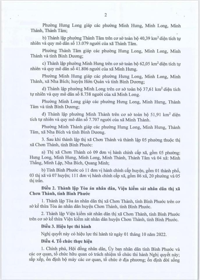 2. Thành lập Tòa án nhân dân, Viện kiểm sát nhân dân Thị xã Chơn Thành, tỉnh Bình Phước.