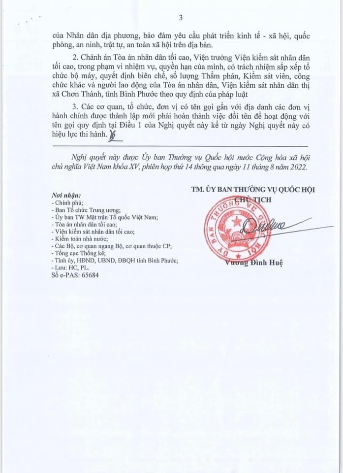 - Thành lập Toàn án nhân dân Thị xã Chơn Thành, tỉnh Bình Phước trên cơ sở thừa kế Tòa án nhân dân huyện Chơn Thành, tỉnh Bình Phước.
